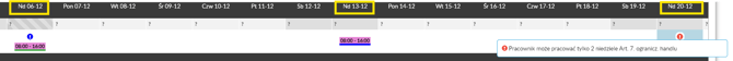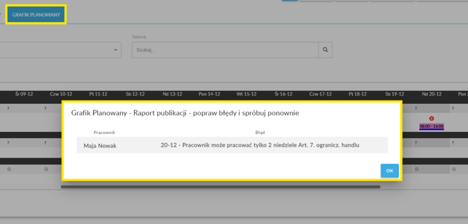 - Na już opublikowanych grafikach grudniowych, po dodaniu pracy w więcej niż dwie niedziele, pojawi się komunikat o błędzie.
