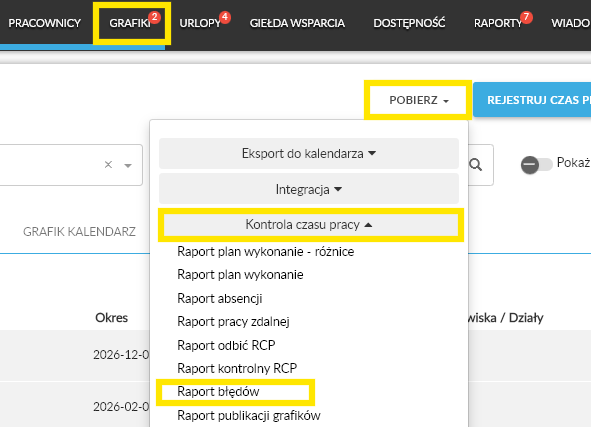 Możesz to zrobić w szybki sposób, korzystając z raportu "Raport błędów", który wygenerujesz w zakładce Grafiki -> Pobierz ->Kontrola czasu pracy -> Raport błędów.