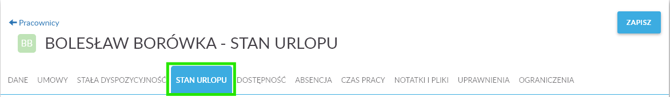 Historia zmian w zakładce Stan urlopu.