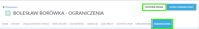 Historia zmian w zakładce Ograniczenia.