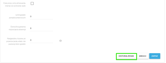 - W zakładce Absencja kliknij przycisk Historia zmian.