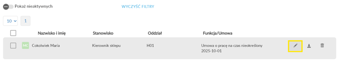 - Określ, czy pole mogą edytować użytkownicy z poziomem uprawnień Administrator np. Kadry, Administratora oddziału np. Kierownicy lub Regionalni.