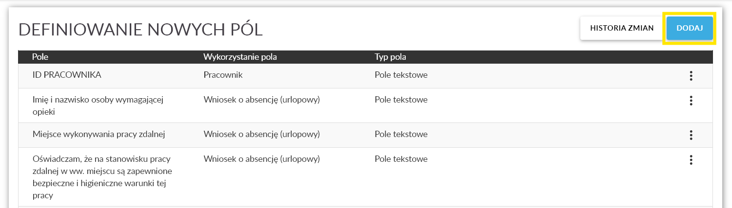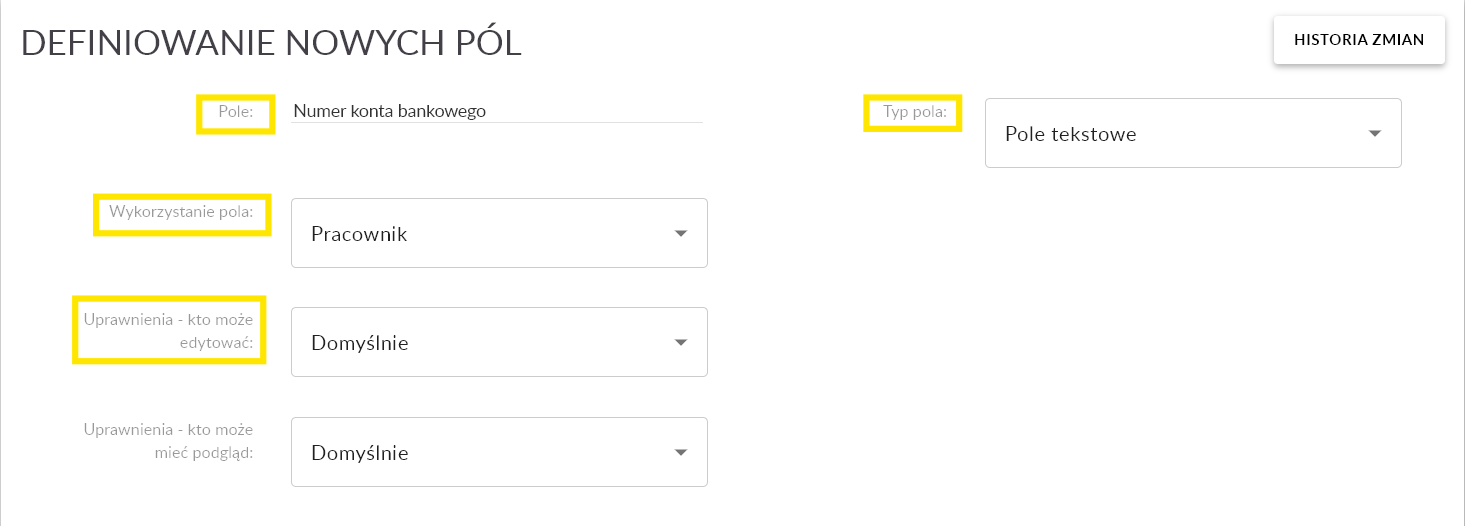 - Zostaniesz przekierowany do miejsca w systemie, w którym zdefiniujesz pole dodatkowe.