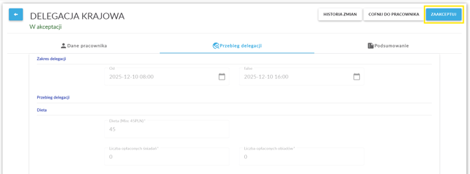 Jak zaakceptować wniosek o rozliczenie delegacji?
