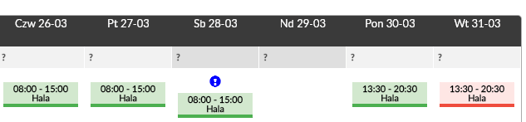 - Jeśli zobaczysz, że w którymś tygodniu zaplanowałeś 4 dni robocze, a dany tydzień kodeksowy miał 5 dni roboczych, w tym miejscu możesz wstawić brakujące 7 h, które musisz usunać z ostatniego tygodnia marca.